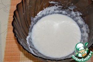 Сначала необходимо завести опару: смешала теплое молоко, 20г сахара, 50г муки, закваску. -