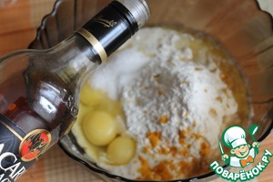 Пришло время завести тесто: в опару добавляю 1 яйцо, 2 желтка, щепотка соли, ванильный сахар, ром, растопленное сливочное масло, 20г сахара, остальную муку