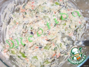 Смешать сыр, творог, зелень, морковь, болгарский перец, чеснок, хорошо перемешать. Посолить, поперчить по вкусу. Поставить в холодильник на час