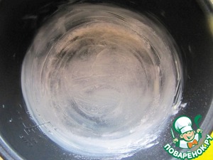 Чашу мультиварки смазать мягким сливочным маслом, припылить мукой.