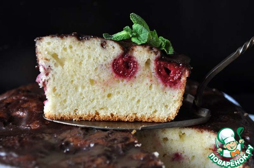 Сверху выкладываем вишню, нет необходимости "топить" ягоды.