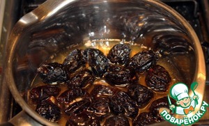 Пока взбивали сливки, подоспел чернослив, во такой весь распаренный. Его оставляем немного охладиться.