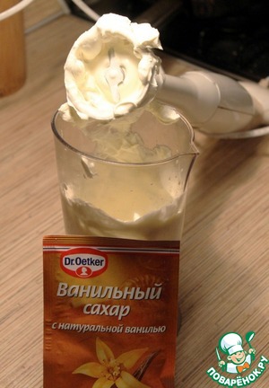 • Взбиваем сливки с сахарной пудрой, у меня под рукой оказался сахар с ванилькой, тоже не дурно.