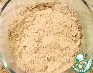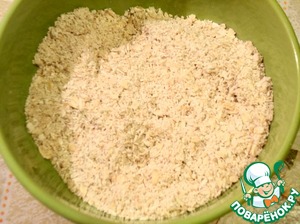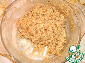 Смешайте в миске геркулес, муку, сахар, орехи.