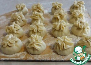 8) Из лепешки сделать мешочек в виде тюльпана, защипывая сверху и оставляя края до 1 см. свободными (в виде цветка).