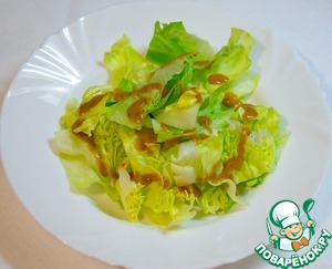 Очень я люблю салат Айсберг. Какой он сочный и сладкий. Поливаем кунжутным соусом.