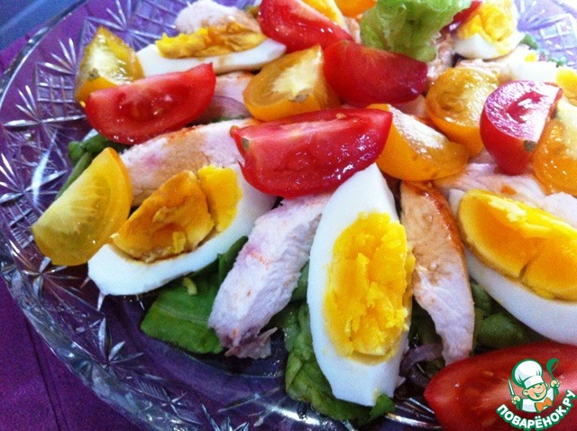 Ингредиенты для «Овощной салат с курицей и яйцом»: