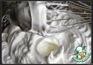 Пока заваривается мята, взбиваем сливки до устойчивой пышной массы, вливаем постепенно, не переставая взбивать, желатиново-мятную смесь и размешиваем до однородной массы. -