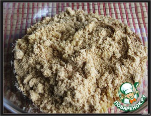 Растопить сливочное масло, перемешать с сахарной пудрой и крошкой печенья.