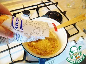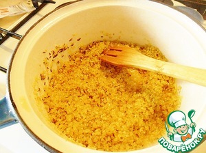 И, помешивая, обжариваем его минуты 2-3, чтобы он пропитался ароматным маслом