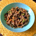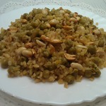 Шикарное блюдо, которое может стать как самостоятельным из-за своей питательности, так и прекрасным гарниром. Интересный вкус отправит вас на Восток. Эту работу сделает приятный ненавязчивый аромат тмина, кориандра и имбирь. А нежный зеленый горошек в сочетании со сладостью изюма и хрустящим арахисом - это просто нечто! Ну и, конечно, солирует булгур - полезная и очень вкусная крупа, которая впитывает в себя все ароматы и прекрасно подчеркивает вкус остальных компонентов!