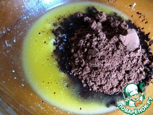 Сливочное масло растопить, добавить какао в горячее масло, перемешать, добавить сахар
