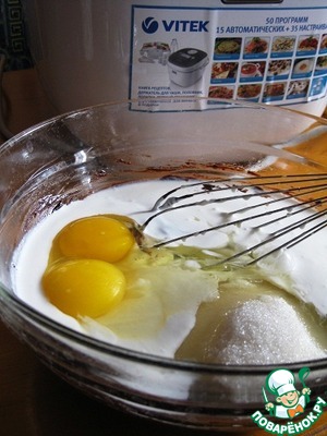 Добавить к муке соду, разрыхлитель, перемешать и подсыпать к смеси. Все хорошо вымешать до однородности.