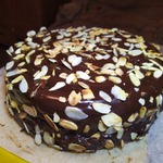 Залить ганашем. Украсить по желанию, у меня лепестки миндаля.