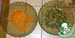 Начинаем подготавливать овощи. Мелко режем половинку болгарского перца