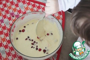 Соедините сухие и жидкие ингредиенты и добавьте клюкву.