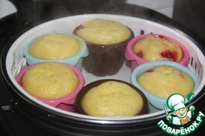 Формочки ставим в лоток для приготовления на пару и отправляем в мультиварку на 30 минут. Программа - готовить на пару.