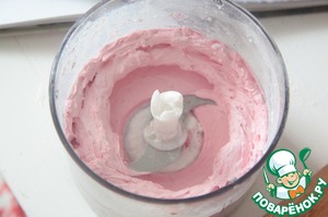 Соедините остатки сахара, клюквы и мягкого творога в однородную массу.