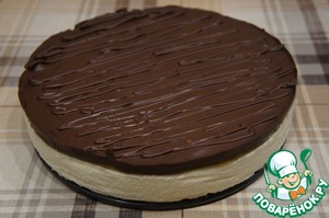 [+5]Делала с некоторыми отступлениями. Для основы вместо печенья испекла тонкий бисквит, пропитала его сгущёнкой. А чтобы шоколад сверху не был твёрдым и ломким, я тёмный шоколад растапливаю и добавляю в него жирные сливки. Получается шоколадный ганаш: замечательный вкус молочного шоколада, и при этом мягкая консистенция даже после застывания. Форма у меня большая была, поэтому не такой высокий тортик, но на вкусе это не отразилось