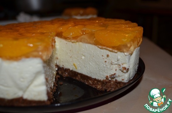 Подогреть желатин до полного растворения и влить в творожную массу, тщательно перемешать, можно даже немного взбить. Вылить массу на корж и убрать в холодильник до полного застывания на 2-3 часа.