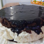 После долгого ожидания, мы с мужем решили его разъесть и тут оказалось, что под шоколадом джем оказался жидким, а корж превратился в монолит, который разрезаться отказался. Пришлось нам снять все, что сверху, а корж дробить ложкой.