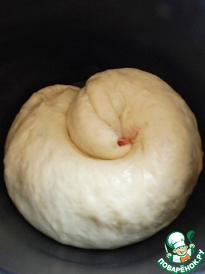 Так как в доме сейчас теплого местечка не найти, я тесто замешивала с помощью хлебопечки, там оно хорошо подошло.