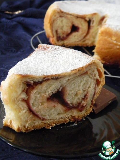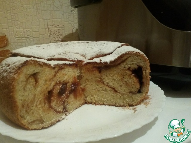 [+4]Тесто замешивала сама, без хлебопечки, у меня этот режим предусматривает 1,5 часа времени, я подумала, что это слишком долго. Все сделала, поставила в теплое место (уже проверенное, там тесто обычно подходит хорошо). Но на этот раз практически не подошло. В размере не увеличилось, но на ощупь стало более воздушное. Оставила еще, но и после этого тесто не подошло. Решила, будь что будет. Раскатала, смазала сливовым вареньем и посыпала крупными кусочками шоколада (только больше взяла, чем в рецепте), скрутила и поставила отдыхать. В моей мультиварке она сначала казалась такой малюсенькой, но потом набухла. Выпекала 60 минут, она немного снизу подгорела, но сверху красиво подрумянилась. Получилась не очень высокой, может так и должно быть. И с одного края упала. Кривобокенькая такая вышла. Не знаю из-за чего.