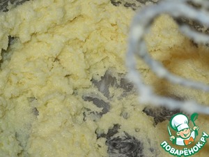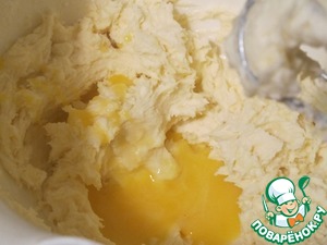 Мягкое масло, сахарную пудру и два желтка, с помощью миксера, взбить в крем.