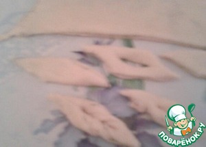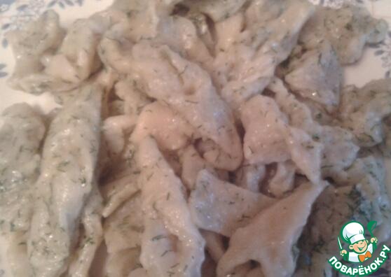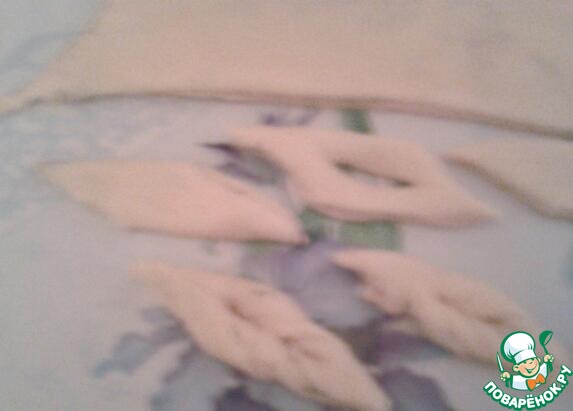 Теперь делаем нашу пасту. Я делала такие штучки, а вы делайте как угодно : лапшой, бантиками, кружочками и т. д. К сожалению фотографий нет, но принцип тот же!