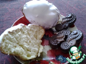 Можно кексы покрыть глазурью. Я использовала готовую "пасхальную " глазурь. По рецепту нужно было взбить один яичный белок, а затем всыпать порошок и взбить с белком.