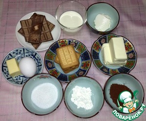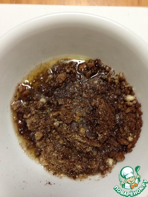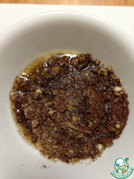 Смешать размолотое печенье, распущенное сливочное масло и какао-порошок.