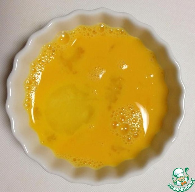 Яйца взбиваем в отдельной чашке до небольшой пены.