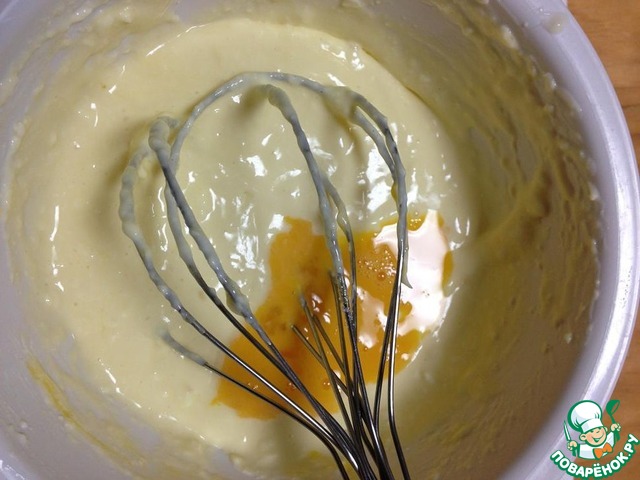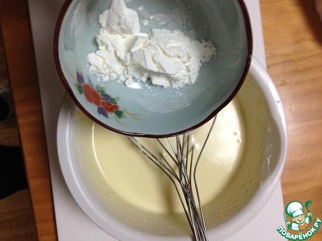 Добавляем сливки и ещё раз тщательно взбиваем.