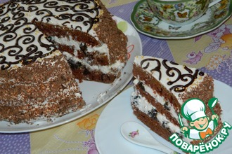 Мне так понравился этот рецепт, что я попробовала ещё другие варианты. В данном случае в прослойку добавила консервированную черешню.. осушив от сиропа и присыпав крахмалом. Получилось ещё вкуснее.