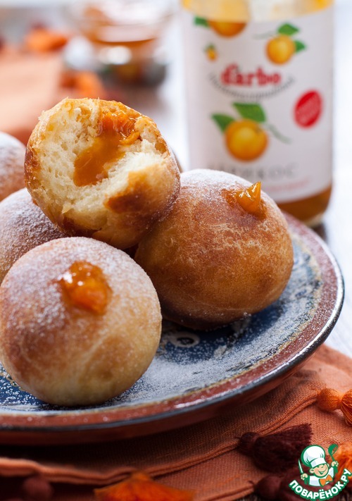 Рецепт «Мини-пончики с абрикосовым конфитюром»: