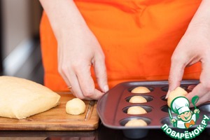 Затем каждый шарик теста положите в ячейку для маффинов и поставьте в духовку, разогретую до 200С. Готовим примерно минут 20, до зарумянивания.