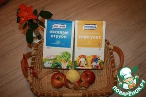 • Готовые овсяные хлопья пробить брендером вместе с запеченными яблоками, добавить отруби, порезанные яблоки, перемешать и хорошо остудить!