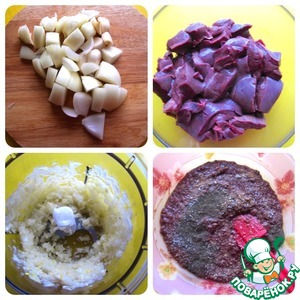 Печень тщательно промойте холодной водой и срежьте все жилки (лучше использовать куриную печень, она более нежная!). Измельчите ее в блендере до однородности вместе с луком и чесноком (по желанию!). Масса должна получиться пюреобразной.