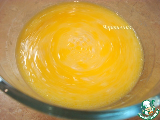 Муку смешать с солью и разрыхлителем. Постепенно добавляя муку в яичную смесь, взбить ее.