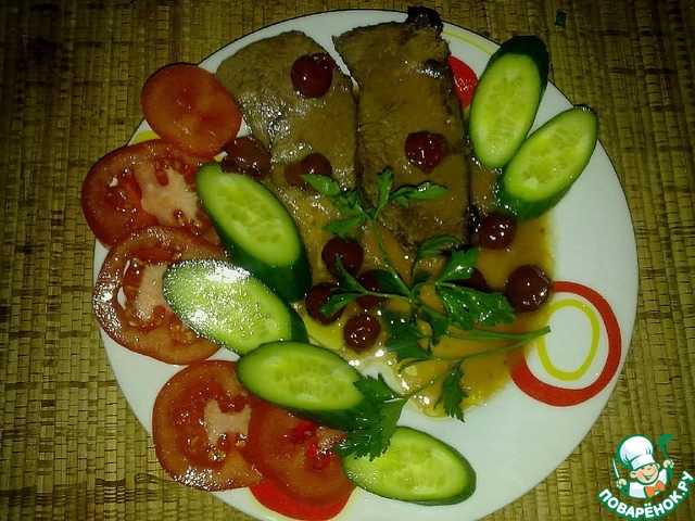 Готовила это блюдо давно, но только сейчас удалось выставить. Нежное мяско в соусе с вишневой кислинкой, вкусно. Рецепт взят из журнала ТВ клуб.