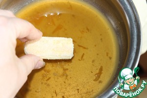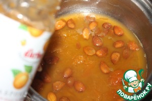 Смешать 2 ст. л. конфитюра, 50г воды и 50г абрикосовых косточек, но их нет в списке ингредиентов. Думаю, что и с миндалем будет вкусно. Итак, смесь покипятить 5 минут и остудить