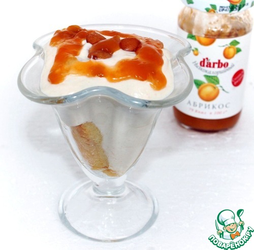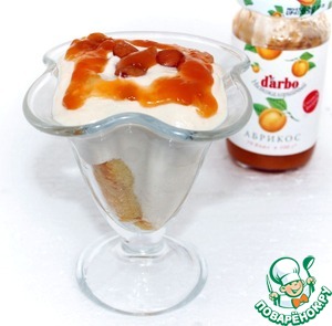 - Конфитюр (абрикосовый от Darbo. 2 ст.л в творог, 2 ст.л. для сиропа) — 4 ст. л.