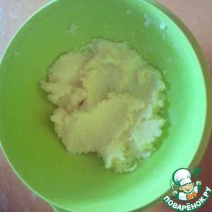 Размягченное масло тщательно растираем с сахаром. Если не очень любите сладкое печенье-сахара можно взять меньше.