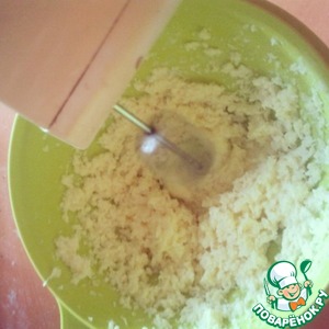 Добавляем куриное яйцо и взбиваем миксером на небольших оборотах.