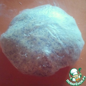 С просеянной мукой замешиваем тесто, заворачиваем его в пищевую пленку.