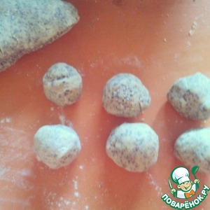 Готовое тесто делим на шарики размером с крупный грецкий орех.