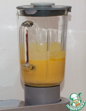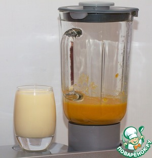 Добавить 1 стакан низкокалорийного йогурта на ваш вкус, у меня абрикосовый, перемешать в блендере
