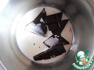 Нагреваем и растапливаем на тихом огне шоколад с нежирным молоком, не забывая помешивать, доводим до гладкой консистенции.