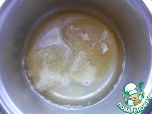 Когда желатин разбух, распускаем его вместе с оставшимся сиропом на медленном огне до полного его растворения. До кипения ни в коем случае не доводим.
