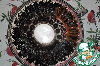 Накрываем форму с тортом пленкой и ставим на ночь в холодильник. Если не терпится попробовать, оставляем хотя бы на несколько часов, чтобы пропитался корж.